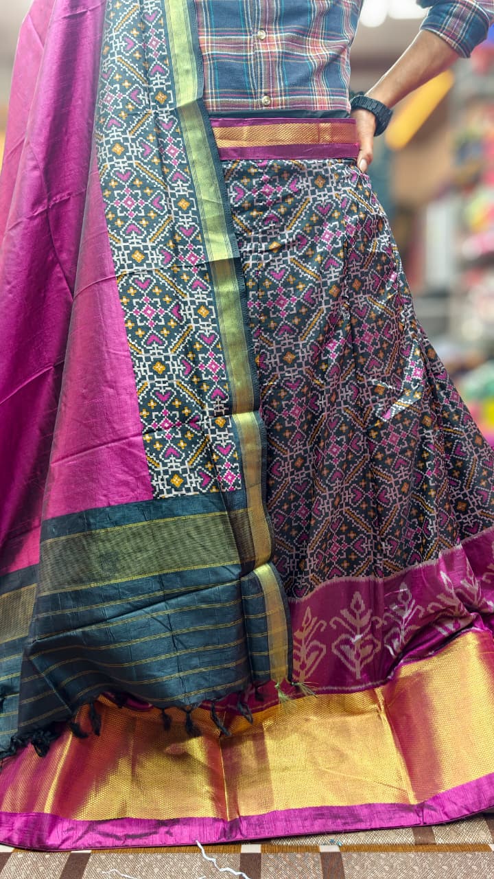To keep your saree beautiful, dry clean it first. For later washes, gently hand wash with mild detergent in cold water. Avoid wringing. Dry in shade and iron on low heat on the reverse side. Store in a cool, dry place, wrapped in a cloth to protect from dust and moisture. Air it out regularly to keep it fresh.