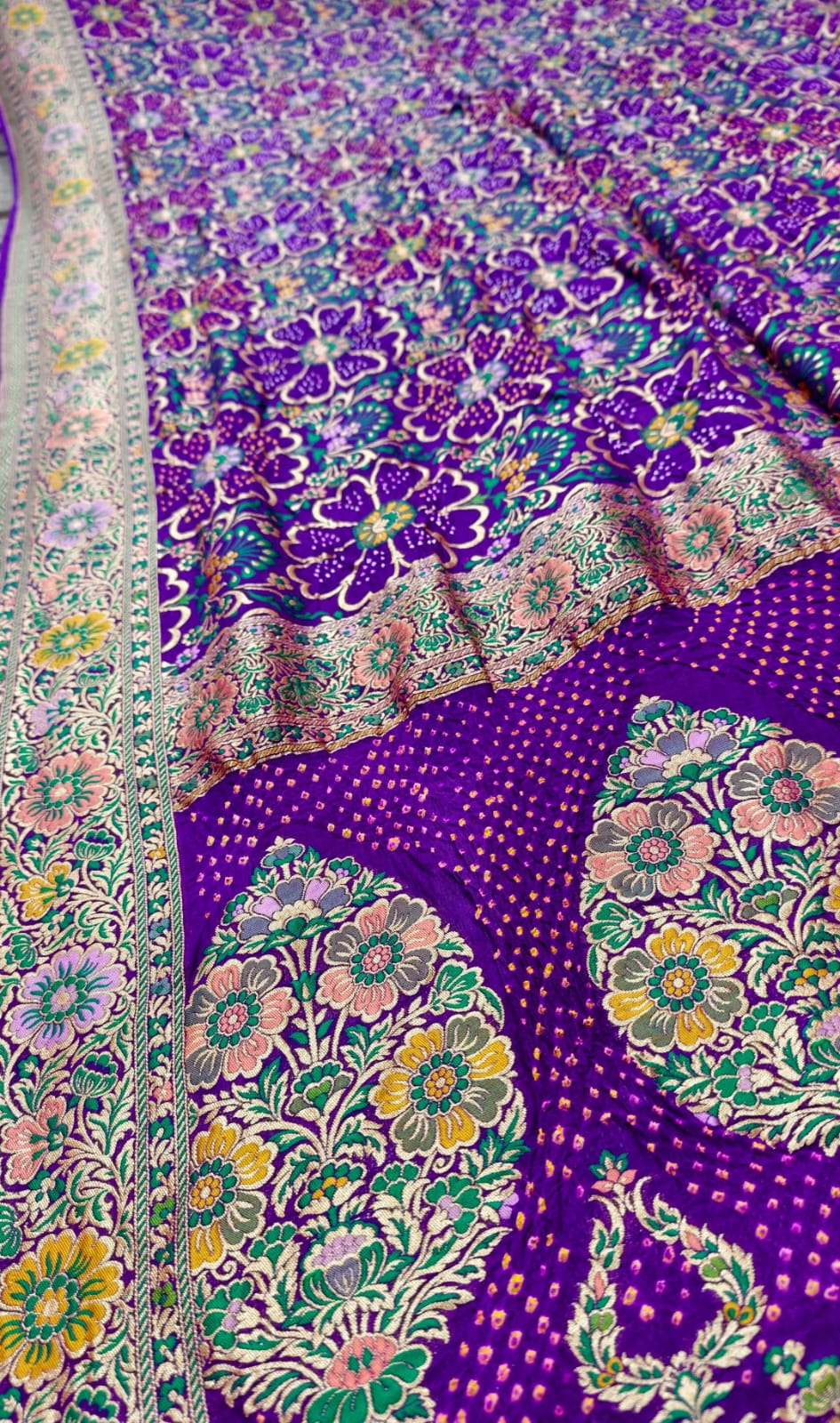 To keep your saree beautiful, dry clean it first. For later washes, gently hand wash with mild detergent in cold water. Avoid wringing. Dry in shade and iron on low heat on the reverse side. Store in a cool, dry place, wrapped in a cloth to protect from dust and moisture. Air it out regularly to keep it fresh.