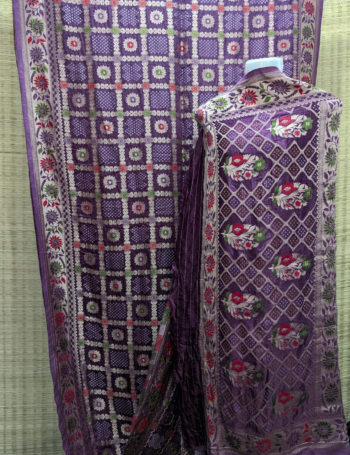 Modal Silk Weaving Bandhani Nakashi Pallu Border Saree