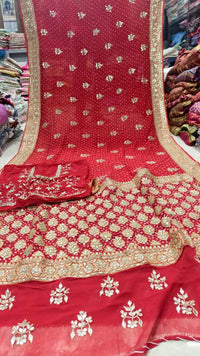 Pure Banarasi Georgette Hand Bandhej Saree - Red