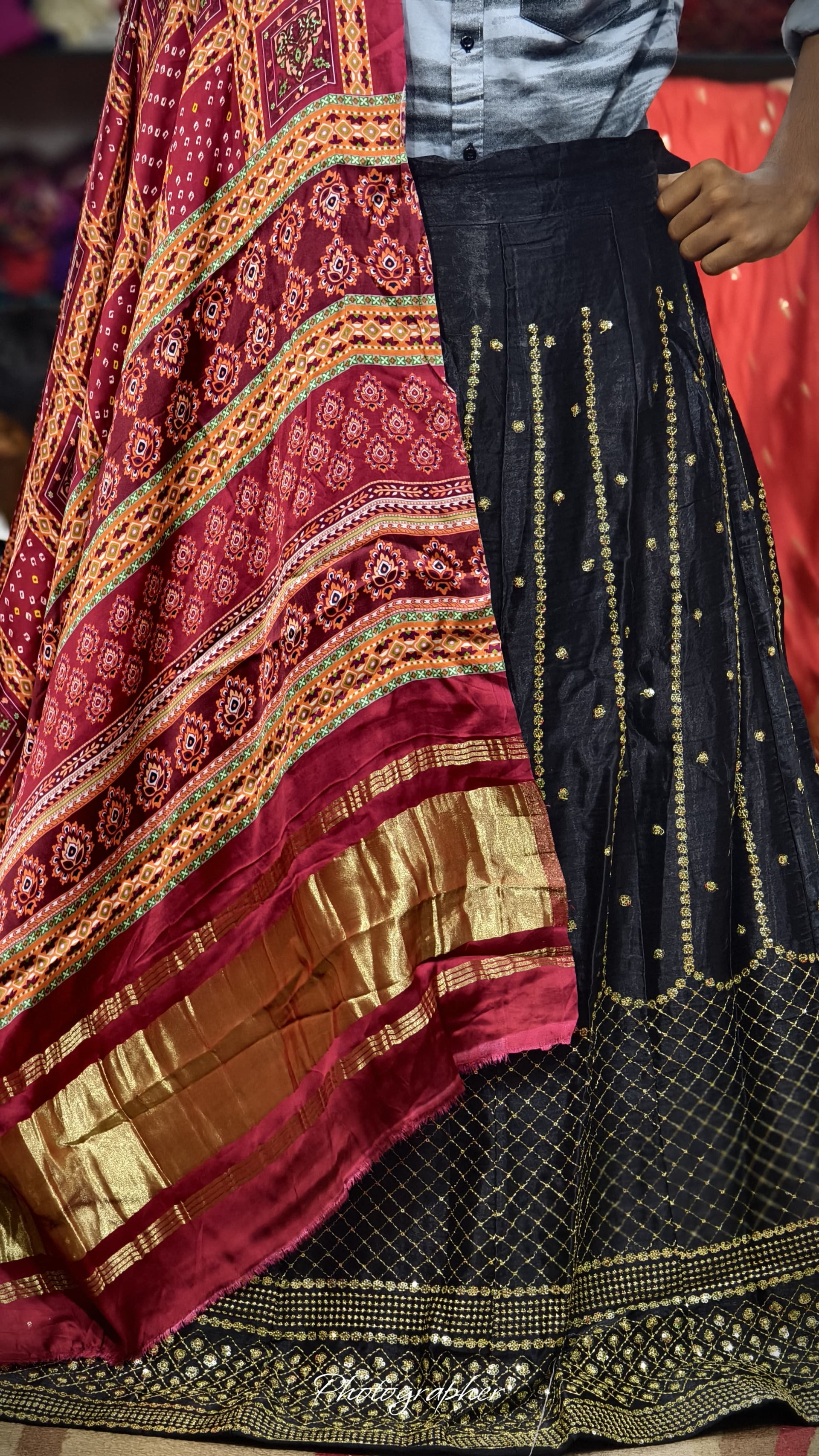 Pure Mashru Gaji Silk Ghagra & Blouse with Hand Bandhej Upada Dupatta