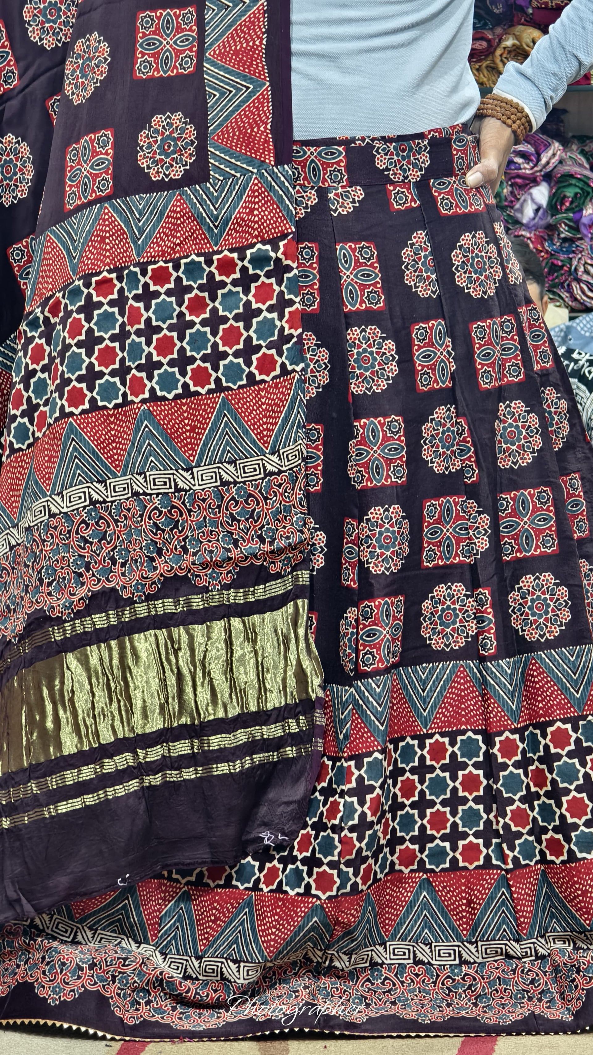 Pure Gaji Silk Hand Bandej Dupatta with Lagdi Patta & Gota Patti Hand Work